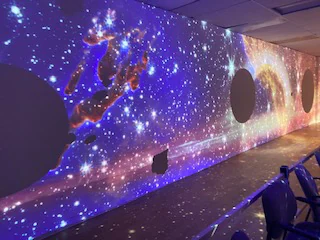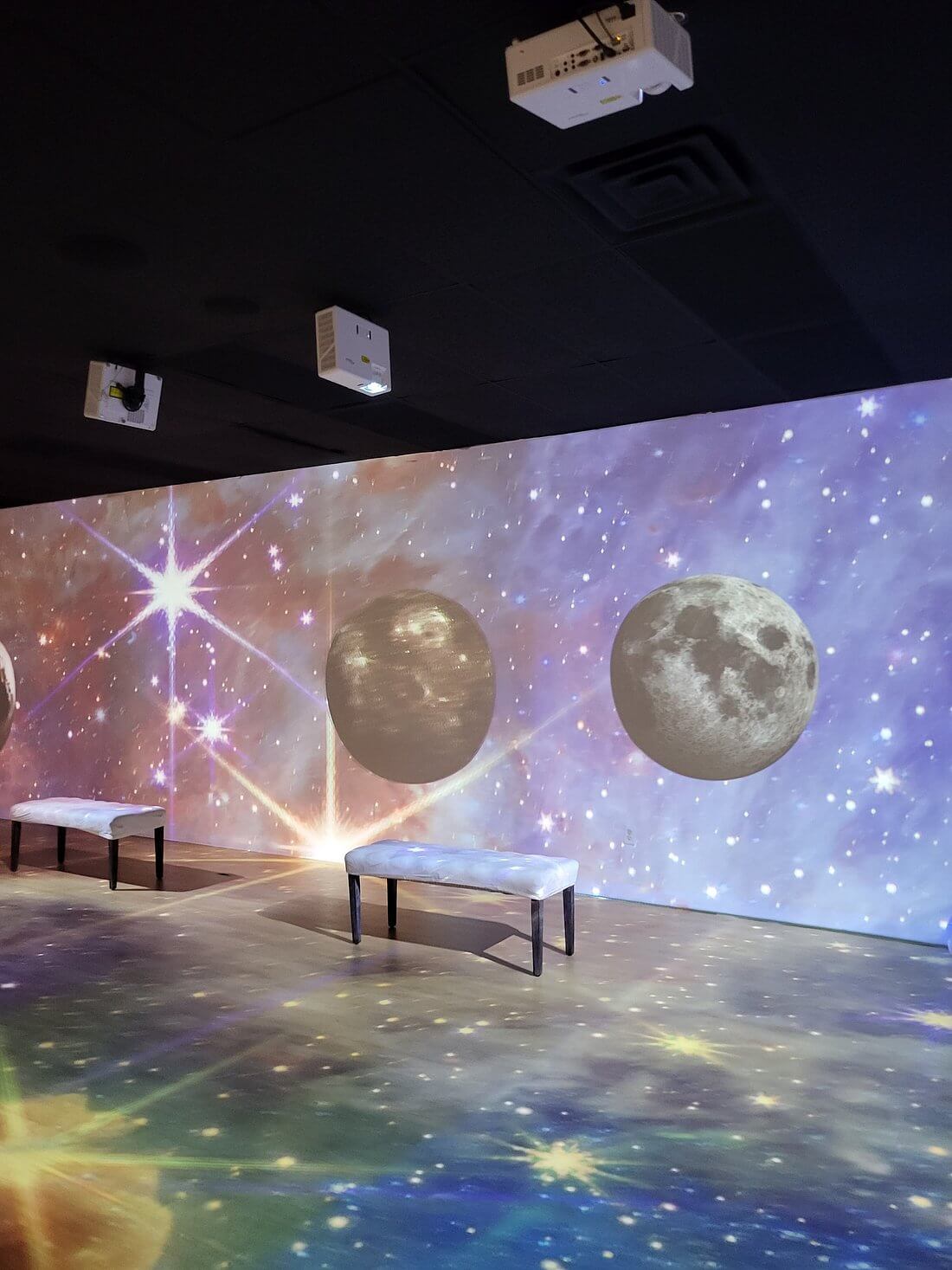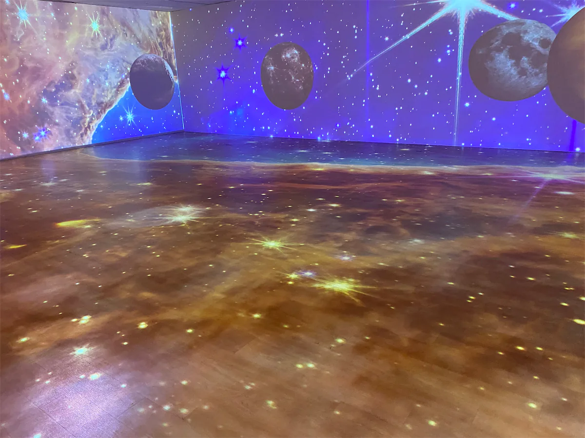 Since the museum is on the Space Coast, we noticed many visitors visiting the Kennedy Space Center or seeing the rocket launch. We decided to implement flying through space using the latest images from the James Webb telescope.