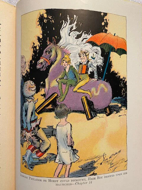 One of the Cocoa Beach attractions in Wizard of Oz museum is display color illustrations from Giant Horse of Oz first edition book.