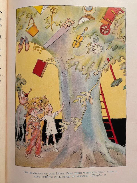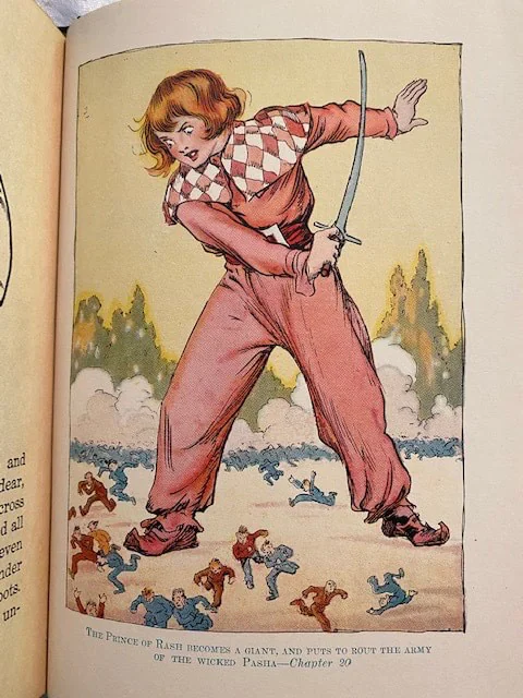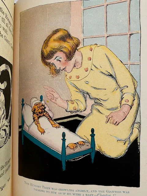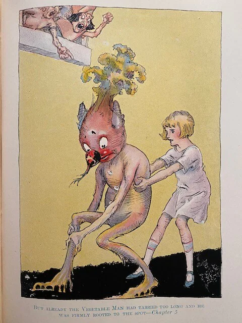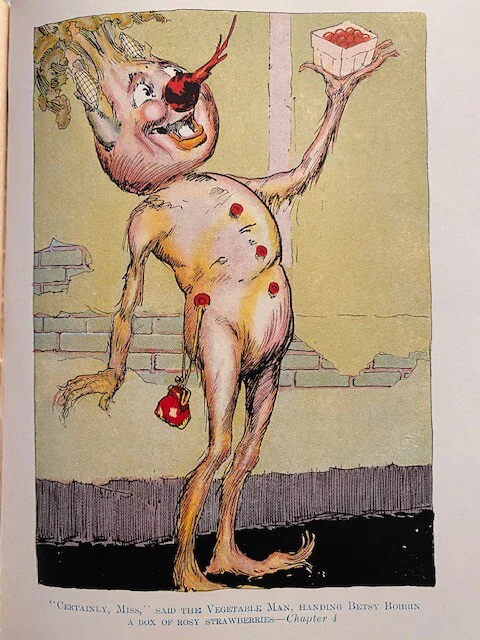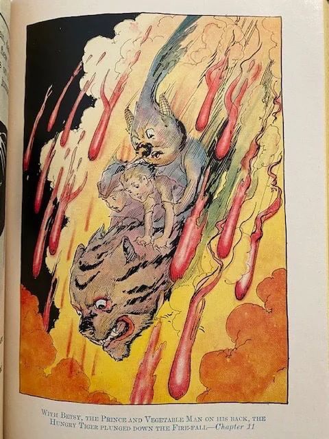 The Hungry Tiger (first seen in Ozma of Oz) is transported to Rash, the Red Kingdom in Ev, where he is made guard of the prison, where he discovers Betsy Bobbin, Carter Green the Vegetable Man, and the Scarlet Prince Reddy of Rash as prisoners. They escape, and have many adventures on the way back to Oz.