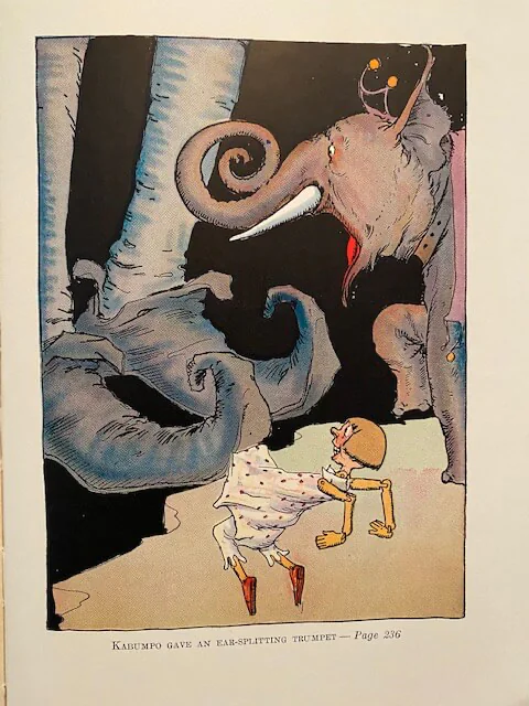 One of the Cocoa Beach attractions in Wizard of Oz museum is display color illustrations from Kabumpo in Oz first edition books from 1922. Short summary of Kabumpo in Oz story:
