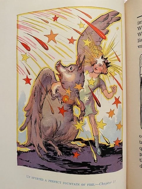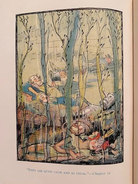 One of the Cocoa Beach attractions in Wizard of Oz museum is display color illustrations from Wishing Horse of Oz first edition book.