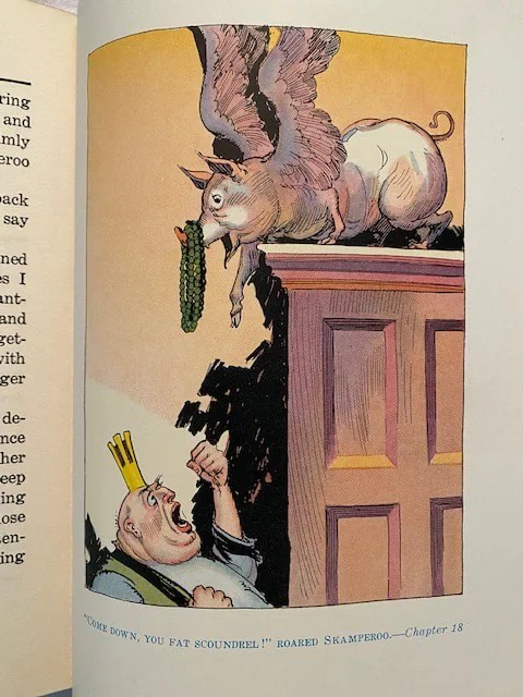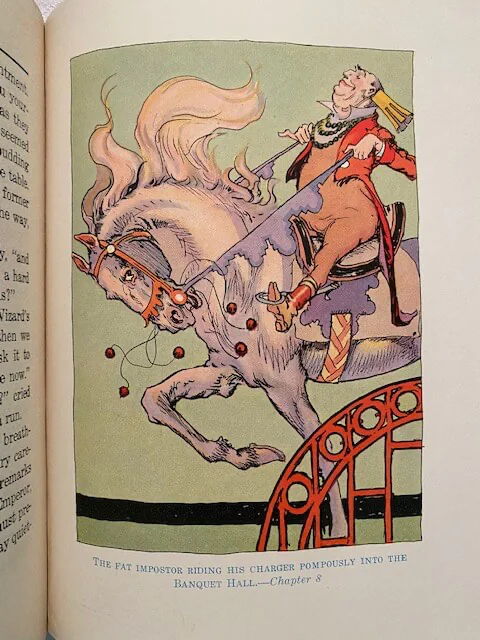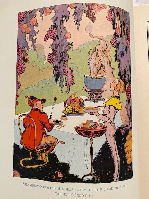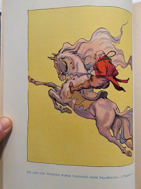 This Oz mystery starts in Skampavia where King Skamperoo wishes for a horse using enchanted emerald necklaces. When Chalk, the Wishing Horse of Oz, falls from the sky, Skamperoo decides the emeralds must be from the Emerald City, and decides to conquer all of Oz.