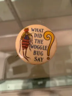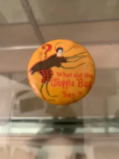 Some Oz-related buttons were produced in the early of the 20 century. One of the first appearances of buttons in the museum from 1905 is based on the Frank Baum book titled Professor Woggle-Bug. Professor Woggle’s bug character was introduced in the 1904 Oz book The Marvelous Land of Oz. Some buttons are produced for International Wizard of Oz conventions, Red Cross, and other occasions.